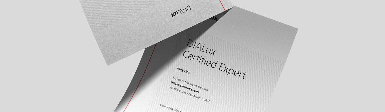 Beweise dich als DIALux Certified Expert und zeige dein umfassendes Fachwissen im Umgang mit DIALux für die architektonische Beleuchtung. Absolviere die gesamte Zertifizierung flexibel über eine Online-Prüfung.