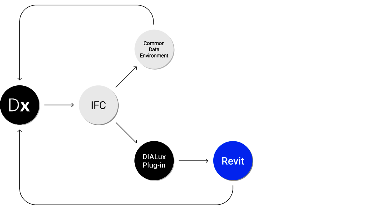 Die BIM-Methode lebt vom strukturierten Austausch von Informationen über den gesamten Planungsprozess hinweg. Dabei arbeiten alle Beteiligten mit einem gemeinsamen Datenstand, einer sogenannten Common Data Environment. Genau dieses Prinzip unterstützt DIALux bereits heute: Gebäudemodelle und Planungsinformationen können offen und softwareübergreifend ausgetauscht werden, ohne an ein proprietäres System gebunden zu sein. Diesen Bereich haben wir mit den Schnittstellen zu DDSCad, Vectorworks und Metaroom bereits gut abgedeckt. Allerdings gibt es auch Formate, die an ein System gebunden sind wie beispielweise Revit.