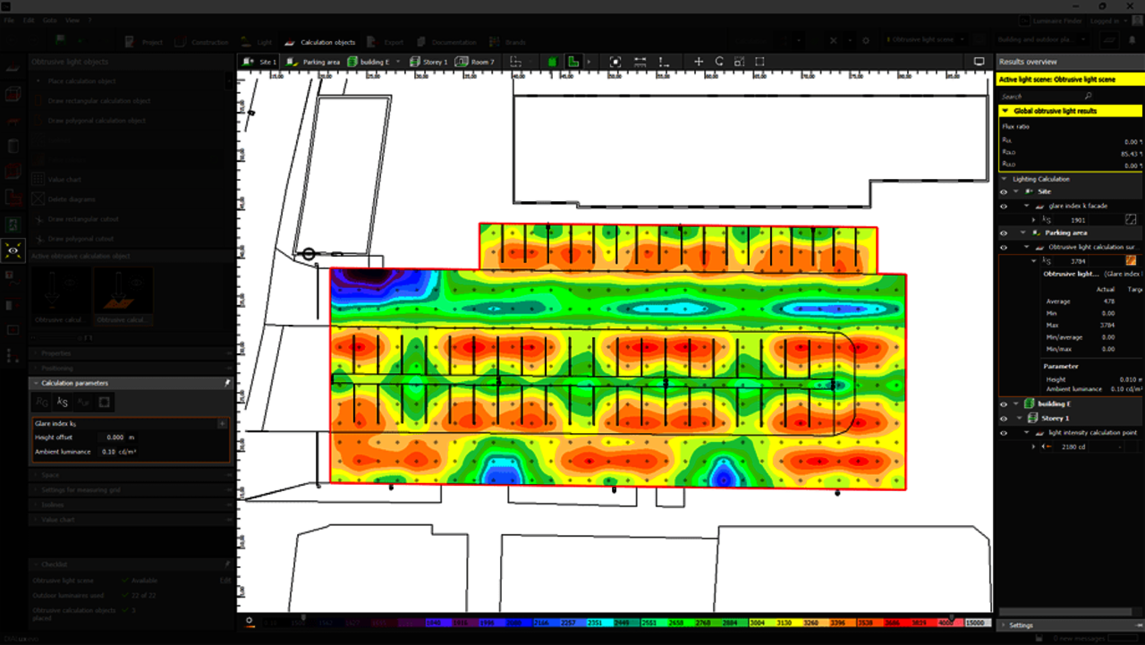Neu in DIALux evo 13: Berechne Lichtimmissionen