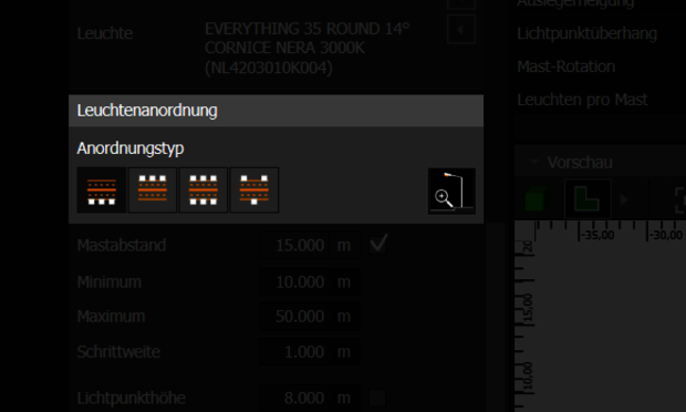 Bestimme die optimalen Leuchten, wähle die Anordnung und passe die Parameter schnell und einfach an deine Bedürfnissen an.