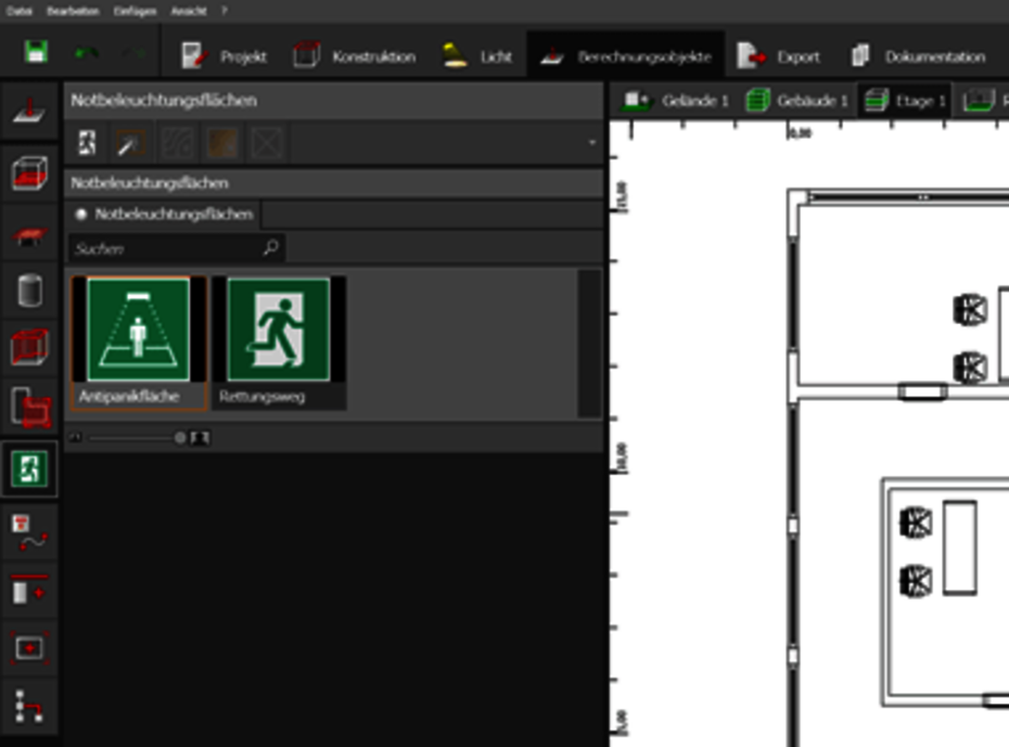 - New calculation objects for emergency lighting have been added in the Calculation objects mode
