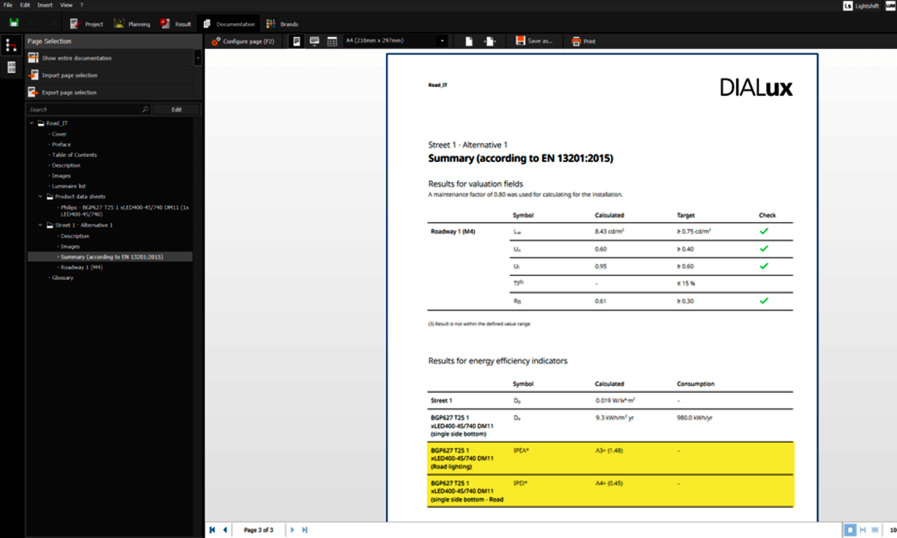 Good news also for lighting designers in Italy: With DIALux evo 11 it is now possible to calculate ratings additionally with IPEA* and IPEI*. You can now simply add these via a checkbox. The results are of course also shown in the documentation.