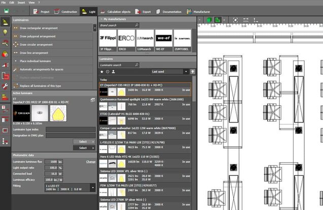 To make it even easier for you to access your favorite luminaires, we've come up with some new useful features for you. We have significantly simplified the visibility and access to brands for lighting designers. In the future, you will be able to add all luminaire manufacturers that are DIALux partners as your favorites. One click will take you to the manufacturer's digital catalog, website and LUMsearch, where you can search specifically for the brand's luminaires.