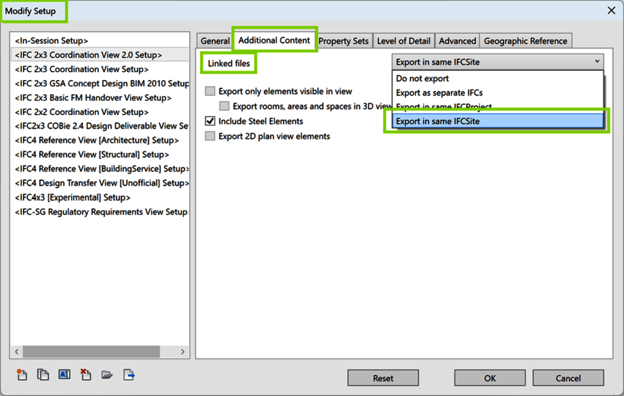 When exporting federated models, Revit can automatically assign a separate location to each sub-model in the IFC file.