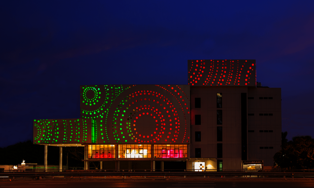 The design team therefore proposed a perforated aluminum façade to cover and protect the building during the day. To match this, the right lighting concept was also needed.