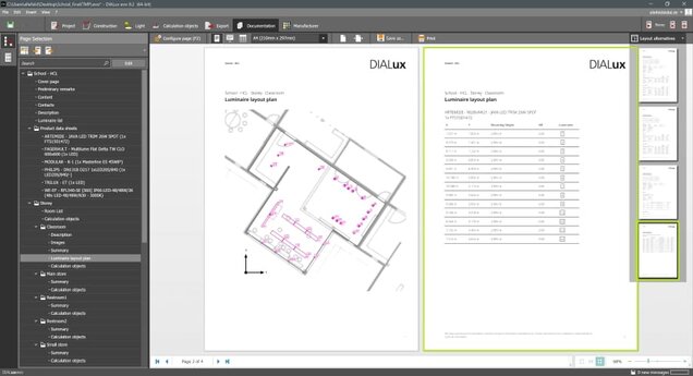 Für die Tabellenseiten im Lageplan gibt es eine zusätzliche Layoutalternative die deutlich kompakter ist. In diesem Layout wird bewusst auf die Angabe von Anordnungsparametern und die grafische Darstellung von Logos, Produktbildern verzichtet. Im Grunde listen wir schlicht Leuchten mit deren Montagepositionen auf. Mit diesem Layout ergibt sich eine Seitenersparnis von bis zu 50 % pro Lageplan.