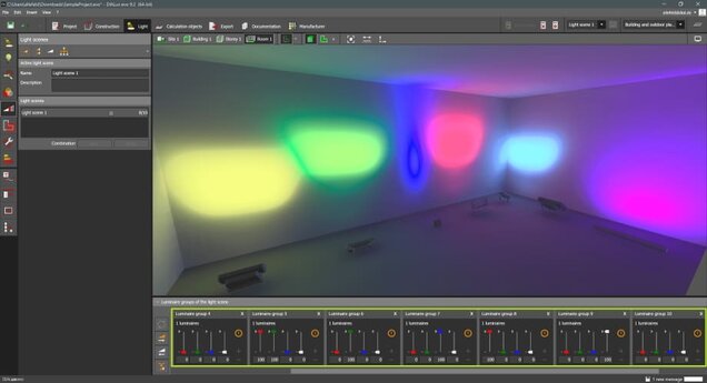 Für farbveränderliche Leuchten färbt DIALux jetzt die Slider entsprechend ein. Dies wird Planern helfen, die Farbkanäle von Leuchten einfacher einzustellen.