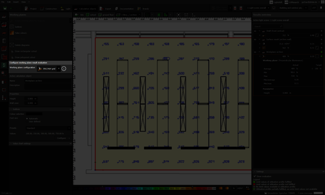 Mit DIALux evo 10.1 ist es möglich für Nutzebenen zwischen dem adaptiven Ergebnis und einem Ergebnis auf Basis des Normrasters (nach EN 12464-1 und -2) umzuschalten. Diese Funktion haben sich viele von euch gewünscht, um Abweichungen bei der Ermittlung der Gleichmäßigkeit korrigieren zu können.