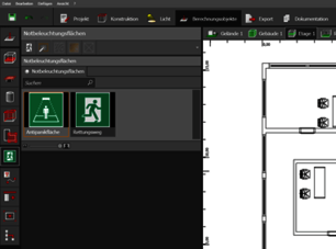 - Es wurden neue Berechnungsobjekte für die Notbeleuchtung im Modus Berechnungsobjekte ergänzt