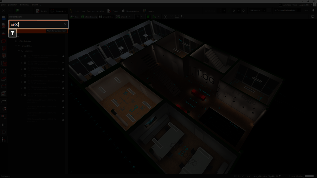 - Einfügeoperationen von Leuchten korrigiert, wenn nur eine Etage aus einem IFC-Modell importiert wird.