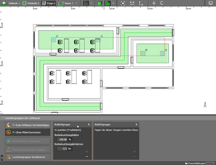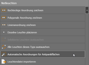 With this function, luminaires can be placed automatically for an existing anti-panic area. Sufficient luminaires are placed to achieve the required illuminance and uniformity.