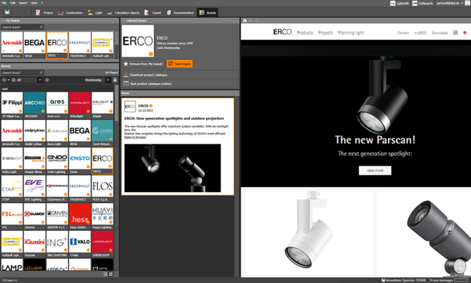 In addition, you can now find out what's new directly in DIALux. News of your brands, such as product news or catalog updates, you will now automatically receive in the DIALux Newsfeed.