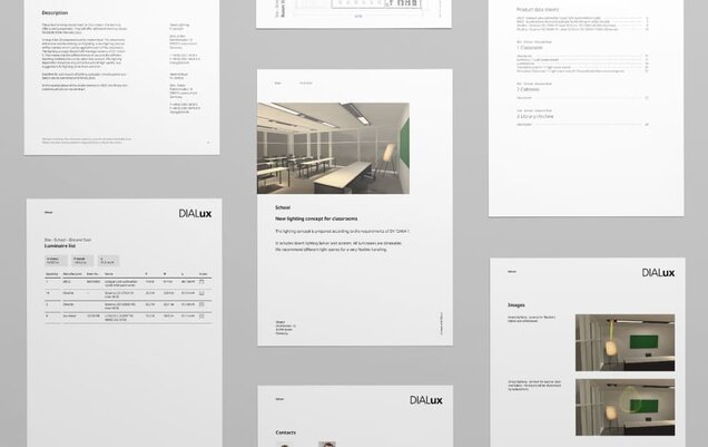 With the new Pro Feature >Layout< in DIALux evo 9 you can create your individual design of the outputs. You can edit: