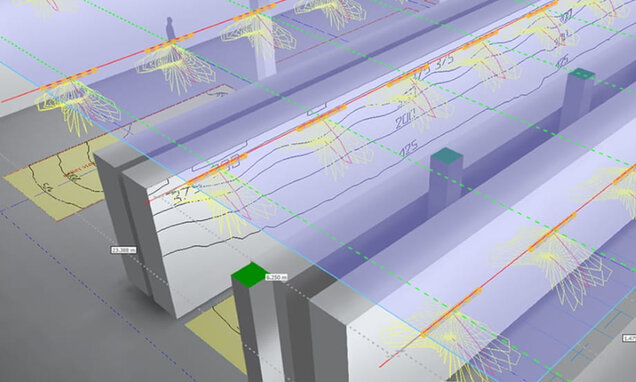 We have also worked on making it easier to use guide lines for luminaires that are oriented towards sloping room boundaries. On the one hand, the guide lines are now activated separately, so that confusion with the field polygon is no longer possible. Furthermore, the guide lines can now be placed freely in the CAD. This allows you to align the lights on any edges or lines.