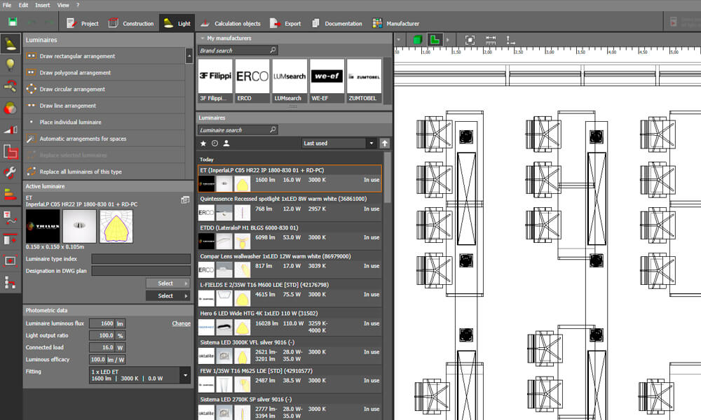 To make it even easier for you to access your favorite luminaires, we've come up with some new useful features for you. We have significantly simplified the visibility and access to brands for lighting designers. In the future, you will be able to add all luminaire manufacturers that are DIALux partners as your favorites. One click will take you to the manufacturer's digital catalog, website and LUMsearch, where you can search specifically for the brand's luminaires.