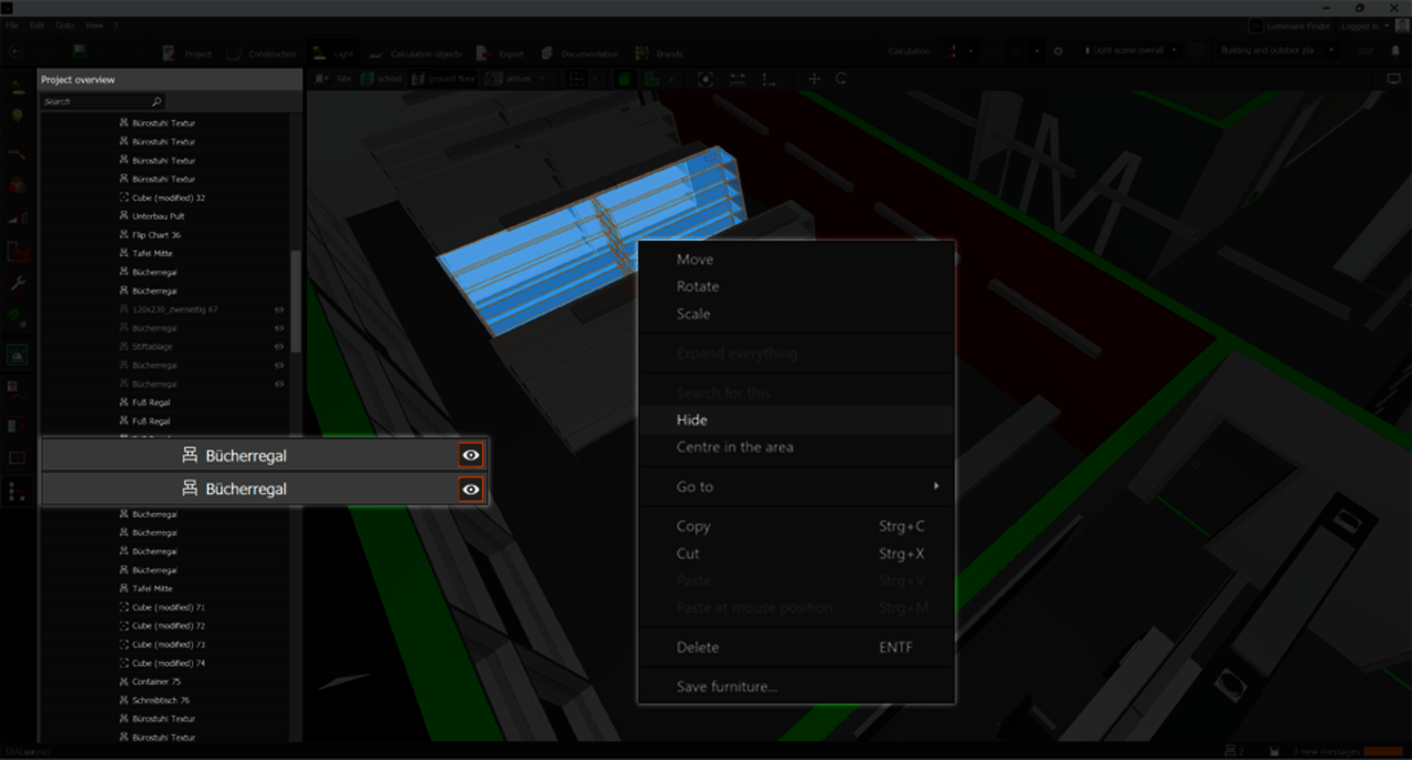 To give you a better overview during lighting design, it will soon be possible to show or hide individual objects and object groups in IFC and DWG designs with just one click.