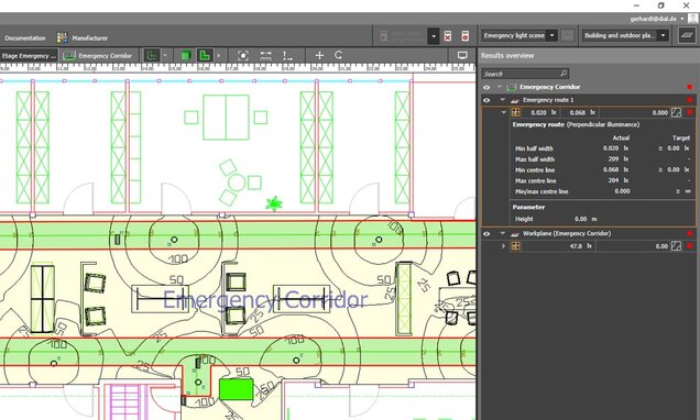 We promised you regular updates about the development of emergency lighting in DIALux evo and we are happy to share some news with you again. The goal is still to make it easy and intuitive to use, so that you can quickly get the results you want. To make this happen, we actively involve experts in the development. For the upcoming version DIALux evo 10 we are still working intensively on this and can already present you some new intermediate results.