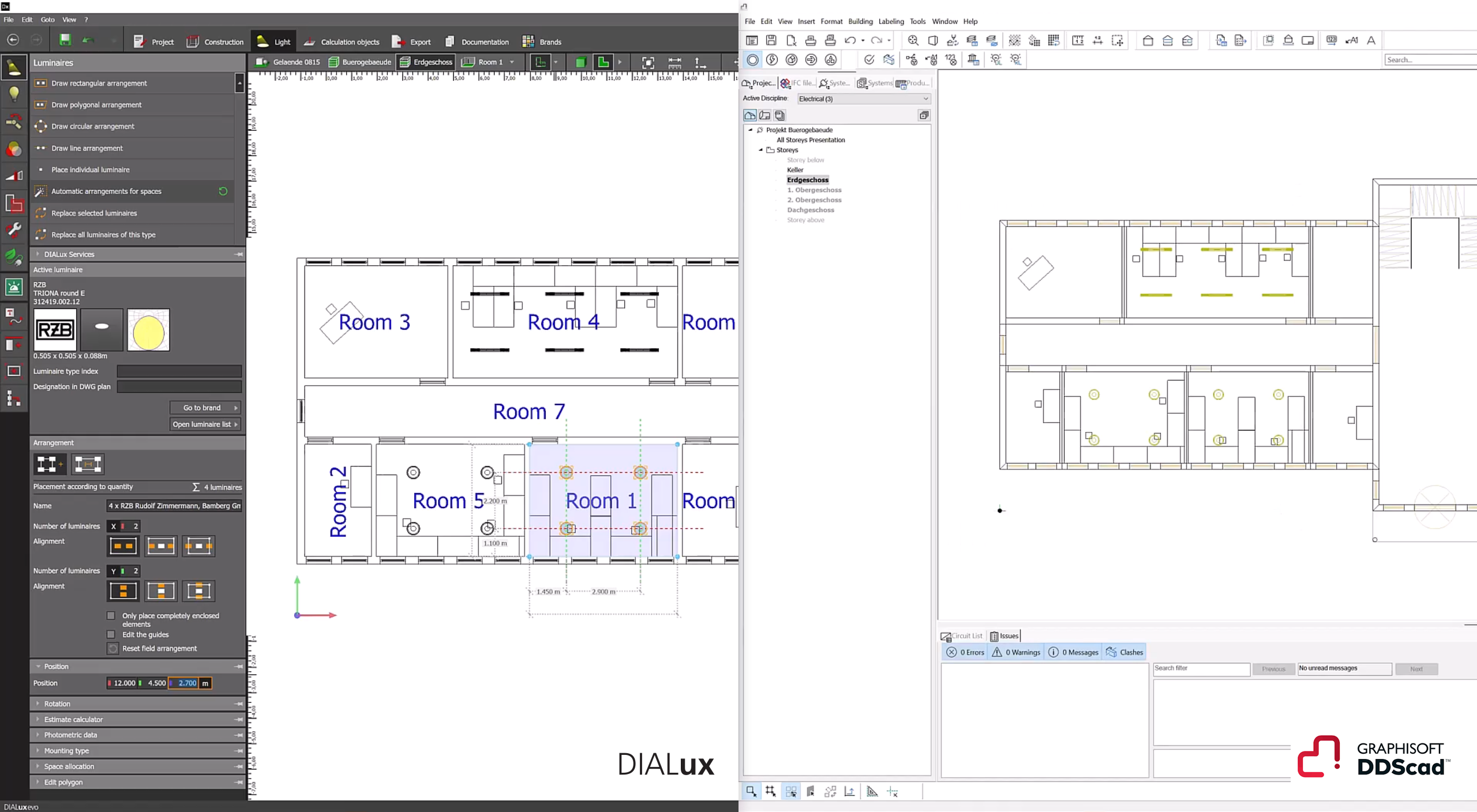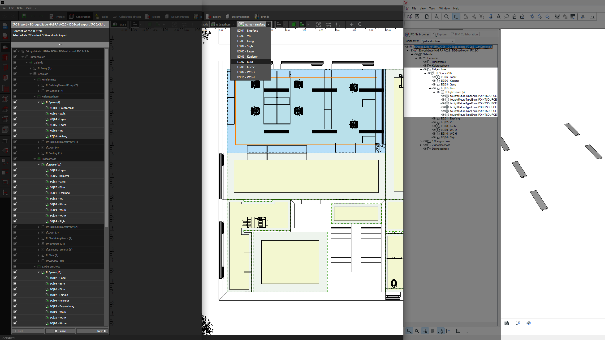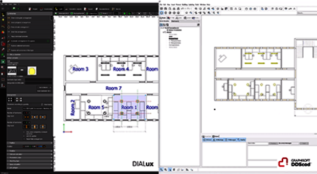 In cooperation with Graphisoft, DIAL has developed a data interface based on IFC that enables the real-time exchange of information between DDScad and DIALux.
