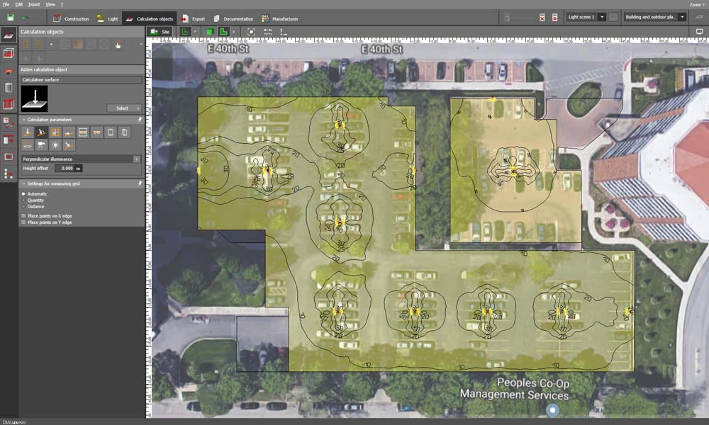 Concevez l’éclairage des espaces extérieurs tels que les façades, les places ou les parcs. Importez des modèles 3D, des plans ou des images et créez votre environnement avec un grand souci du détail. Positionnez les luminaires avec précision, ajustez la hauteur de montage et les angles de faisceau, et réduisez la pollution lumineuse et l’éblouissement – pour un éclairage extérieur efficace et conforme aux normes.