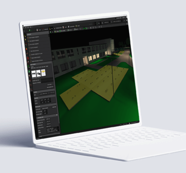 Progetta l’illuminazione per spazi esterni come facciate, piazze o parchi. Importa modelli 3D, planimetrie o immagini e crea l’ambiente con grande attenzione ai dettagli. Posiziona con precisione gli apparecchi, regola l’altezza di montaggio e gli angoli del fascio luminoso, e riduci l’inquinamento luminoso e l’abbagliamento – per un’illuminazione esterna efficiente e conforme alle normative.