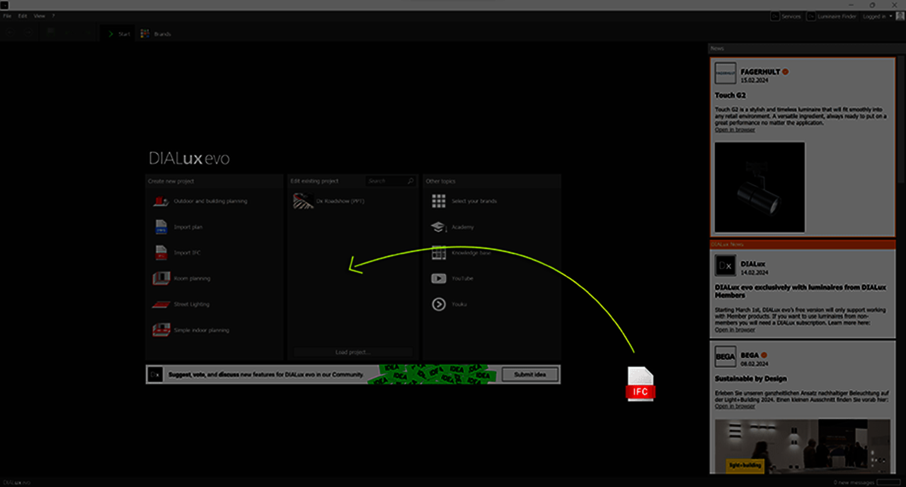- 作为 Open BIM 流程的一部分,IFC 模型内的空间显示细节已获得改善,提升对空间细节的容错度使得 DIALux evo 能处理过去无法读入的模型文件。